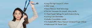 BaBylissPRO Secador de pelo, Nano Titanium 2000-Watt Blow Dryer